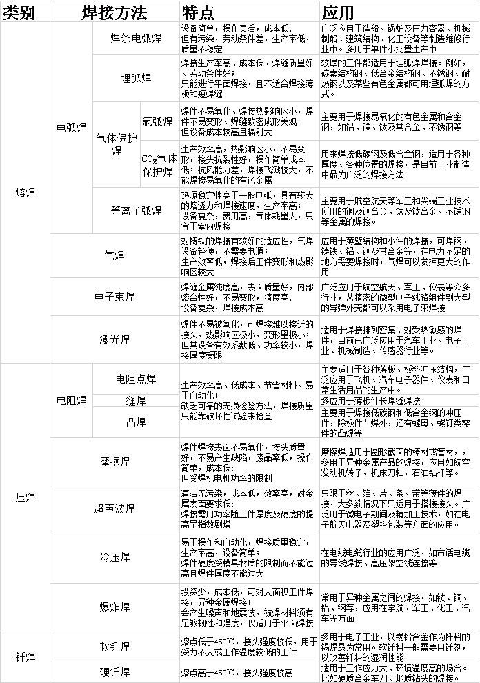 隨著制造業的高速發展,傳統的手工焊接已不能滿足現代高技術產品制造的質量、數量要求,現代焊接制造技術正在向著機械化、自動化、數字化的方向發展。近年來,焊接自動化在實際工程中的應用發展迅速,已成為先進制造技術的重要組成部分。焊接技術的發展趨勢及其在智能制造中的影響。不同焊接方式的特點和應用場景如下: