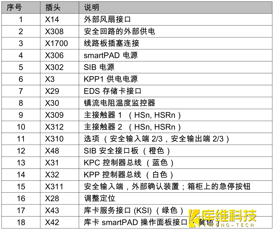 控制柜 (CCU)包含兩塊電路板 (CIB 控制柜接口板和 PMB 電源管理板),是機器人控制系統(tǒng)所有組件的配電裝置和通訊接口. 所有數(shù)據(jù)通過內(nèi)部通訊傳輸給控制系統(tǒng),并在那里繼續(xù)處理. 當(dāng)電源斷電時,