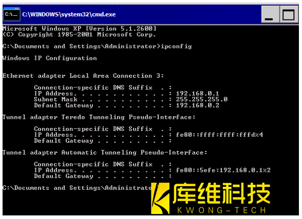 ipconfig 可顯示 TCP/IP 網(wǎng)絡(luò)的所有最新配置值,并可更新 DHCP 設(shè)置 (動(dòng)態(tài)主機(jī)配置協(xié)議)和 DNS 設(shè)置 (域名名稱系統(tǒng))。 在沒有參數(shù)的情況下,ipconfig 可顯示每個(gè)適配器的 IP 地址、子網(wǎng)掩碼和默認(rèn)網(wǎng)關(guān)。
