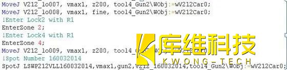 比如說:在機器人走到某一點的時候,有可能和其他機器人發(fā)生干涉,那在這個點的前一點或更前面的點,就要提前給出提示,用備注行的形式,寫出會與哪個機器人發(fā)生干涉,如上圖的: !enter lock with R1。但是EnterZone2這個就不需要寫了,因為這個是后續(xù)和PLC交換信息時候才會用到,前期程序?qū)耄瑱C器人會認(rèn)不到這個命令而報錯。