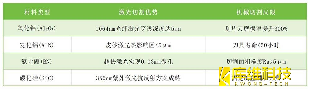 在陶瓷基板向??0.01mm級(jí)超薄化??、??2000孔/cm²超高密度??演進(jìn)的今天,激光切割憑借其??精度無(wú)損、效率躍遷、成本可控??的三重優(yōu)勢(shì),正成為高端制造的主流選擇。建議企業(yè)在5G基站、車規(guī)芯片等關(guān)鍵領(lǐng)域率先布局激光切割技術(shù)。