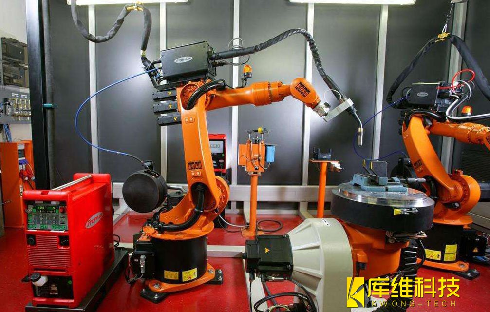 焊接機器人是從事焊接(包括切割與噴涂)的產業機器人,它主要包括機器人和焊接設備兩部分。其中,機器人由機器人本體和控制柜(硬件及軟件)組成;而焊接裝備,以弧焊及點焊為例,則由焊接電源(包括其控制系統)、送絲機(弧焊)、焊槍(鉗)等部分組成。對于智能機器人,還應配有傳感系統,如激光或攝像傳感器及其控制裝置等。